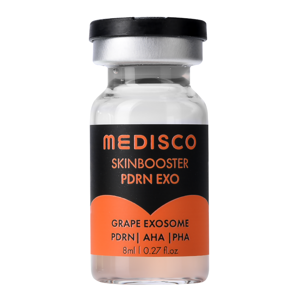 MEDISCO SKINBOOSTER PDRN EXO contains 5,000 PPM of Sodium DNA, which helps promote skin regeneration and restore elasticity, while grape exosomes strengthen the skin barrier.