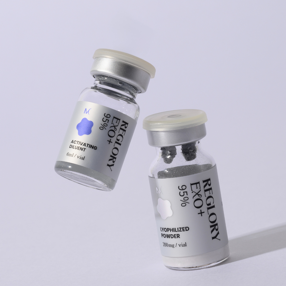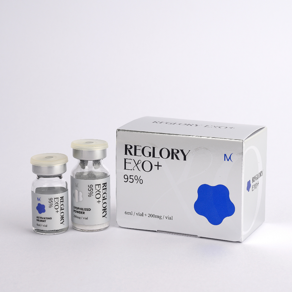 Reglory Exo+ contains not only 95% Human Adipose-Derived Stem Cell Conditioned Media cultured using a serum-free medium to enhance the efficacy of active ingredients but also Niacinamide, Adenosine, Sodium Hyaluronate, Sodium PCA, and Betain.