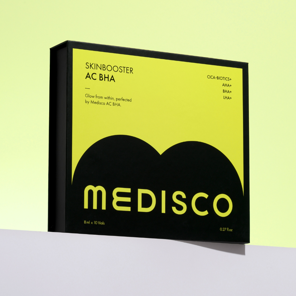 MEDISCO SKINBOOSTER AC BHA is formulated to target problematic skin with a high concentration of AHA (10,080 PPM) and BHA (1,900 PPM) to effectively remove dead skin cells and excess sebum, while also clearing out impurities from clogged pores.